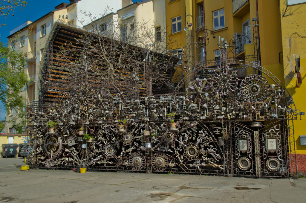 J’en ai parlé récemment, dans l’article consacré aux meilleurs clubs de Prague : le Cross Club rentre également dans la case des curiosités ! À la fois bar, restaurant et lieu culturel à part entière, sa déco, composée de structures métalliques, rouages et moteurs, a été entièrement fabriquée à partir de matériaux recyclés !